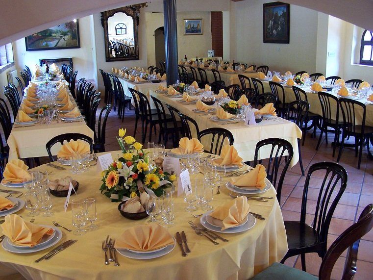 piacevolmente arredate ma anche di varie salette riservate, nonché di parco privato e di una incantevole cornice naturale (ideale anche per servizi fotografici), il locale è la meta ideale per ricevimenti e banchetti di ogni tipo (Matrimoni, Comunioni, Battesimi, Cresime, nozze d’oro, feste di laurea, compleanni, cene aziendali ecc.), potendo comodamente accogliere fino a 300 posti a tavola.